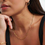 Modern minimalism, effortlessly elevated. This sleek paperclip-style chain drapes elegantly around the neckline, crafted from high-quality 316L stainless steel with 18CT gold plating for a radiant finish that transitions seamlessly from day to night.